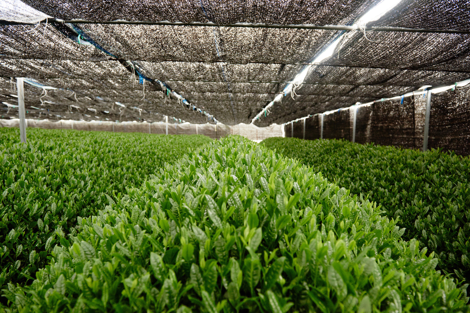 Nur eine kleine Elite der Teebauern in Japan ist in der Lage, Matcha herzustellen. Der Tee, aus dem Matcha gewonnen wird, heißt Tencha und wächst in speziellen Schattenteeplantagen. Zwei bis vier Wochen vor der Ernte werden diese Plantagen mit dunklen Netzen abgedeckt, um das Sonnenlicht um 90% zu reduzieren. Diese Technik sorgt dafür, dass die Teepflanzen das fehlende Sonnenlicht durch eine verstärkte Chlorophyllproduktion ausgleichen. Dies fördert den Aufbau von Aminosäuren und verleiht dem späteren Matcha einen zarten, süßlichen Geschmack.